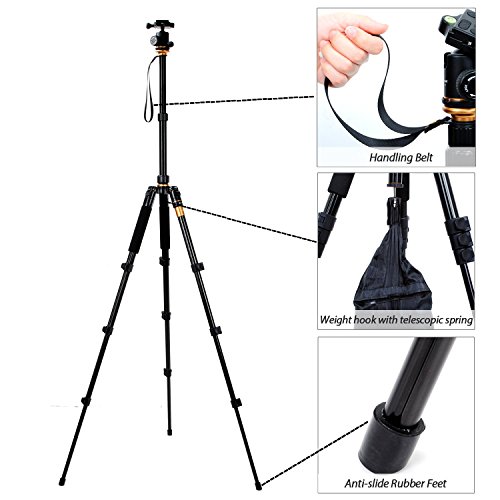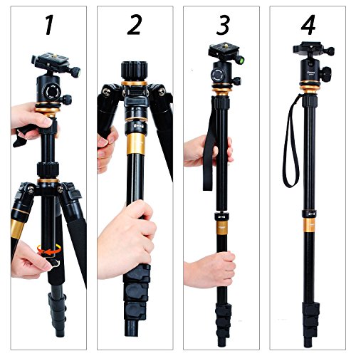 All images of Leaptek Professional Portable Magnesium Aluminium Alloy Tripod Monopod Kit with Ball Head For DSLR SLR Camera DV Canon Nikon Petax Sony + Waist Tripod Holder Max Height: 141cm