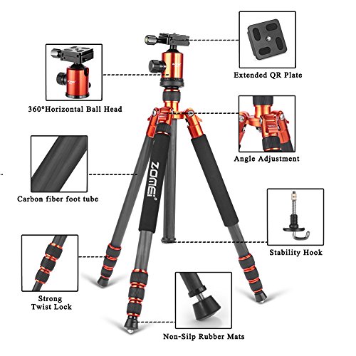 All images of Zomei Z818 Compact Portable Sturdy Travel Aluminium Alloy Tripod Monopod Stand Mount with Ball Head includes Carrying Case for Camera Canon Nikon Sony Sanmsung Olumpus-Orange