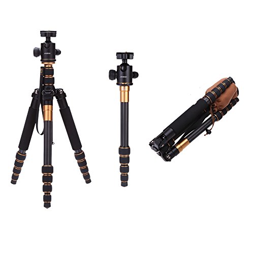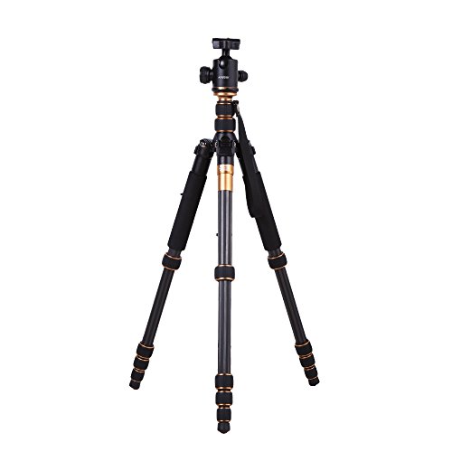 Andoer Q666C Pro Carbon Fiber Tripod for SLR Camera Ball Head Monopod Changeable Portable Traveling 5-section Column Leg,Three Adjustment Knobs
