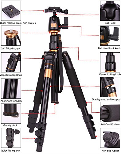 All images of Discoball Q-555 Professional Magnesium Aluminium Alloy Camera Tripod Universal For Canon Nikon Petax Sony Ball Head Monopod For DSLR SLR Camera DV Max Height: 55.9", Max Load: 8 KG