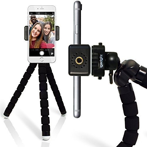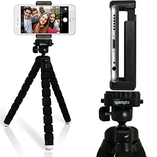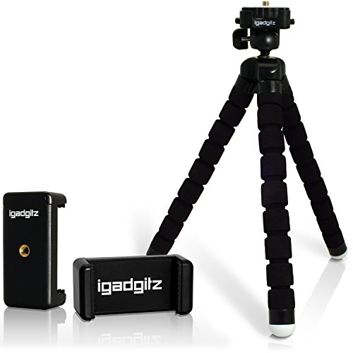 All images of iGadgitz Lightweight Large Universal Flexible Foam Mini Tripod with Universal Smartphone Holder Mount Bracket Adapter for SLR DSLR Cameras Including Quick Release Plate- Black