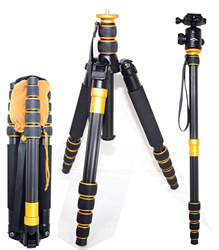 Koolehaoda Q-666C Carbon Fiber SLR Camera Tripod Monopod & Ball Head Portable Compact Travel for SLR Camera Canon Nikon Petax Sony Tripod Max Height: 62", Max Load: 15kg
