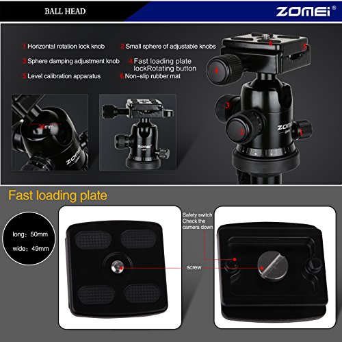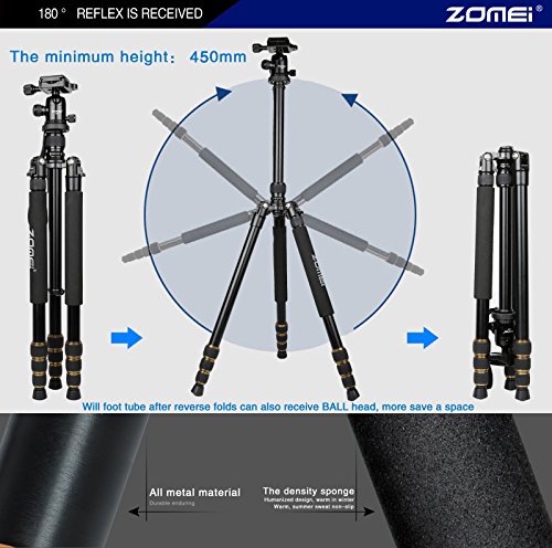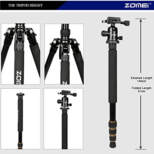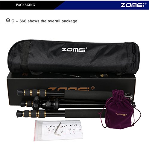 All images of ZOMEI® Z-Q666 Traveller Camera Magnesium Aluminium 5-Section Center Column Adjustable Tripod Monopod with 360º Quick Release Ball Head and Ball Head Pocket