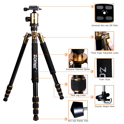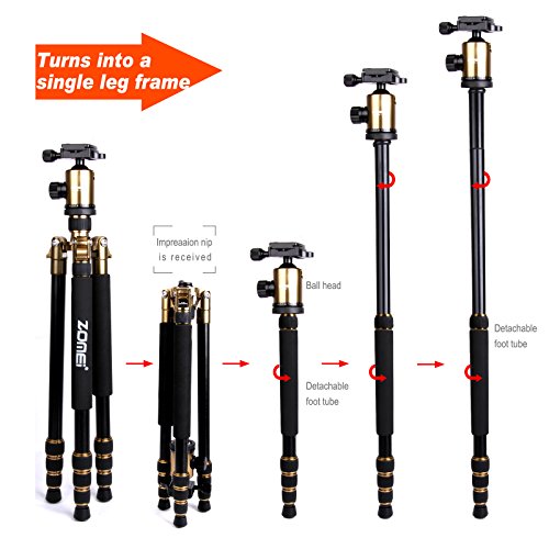All images of Zomei Z818 Portable Magnesium Aluminium Camera Compact Travel Tripod Monopod Kit with Ball Head and Carry Bag (Golden)