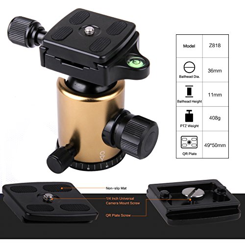 Zomei Z818 Portable Magnesium Aluminium Camera Compact Travel Tripod Monopod Kit with Ball Head and Carry Bag (Golden)