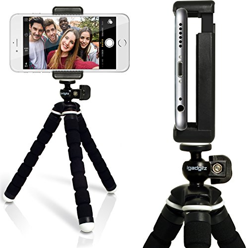 iGadgitz Lightweight Small Universal Flexible Foam Mini Tripod with Universal Smartphone Holder Mount Bracket Adapter for SLR DSLR Cameras- Black
