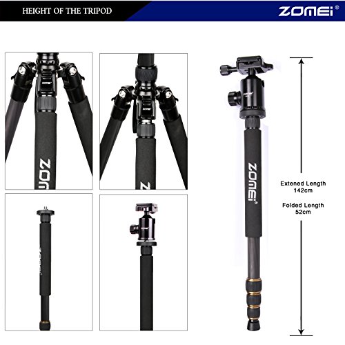 All images of Zomei® Z668C Carbon Fiber Photographic Camera Detachable Tripod Monopod Portable Travel Tripods with 360° Ball head Suitable For Canon Nikon Sony Camera DSLR