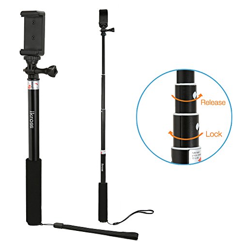 iKross 3in1 GoPro Hero / smartphone / Camera Monopod Selfie Handheld Extendable Stick Pole with Mount Holder & Mini Tripod - Black