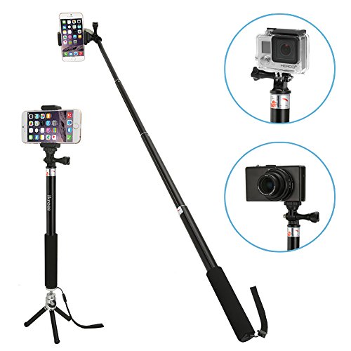 All images of iKross 3in1 GoPro Hero / smartphone / Camera Monopod Selfie Handheld Extendable Stick Pole with Mount Holder & Mini Tripod - Black