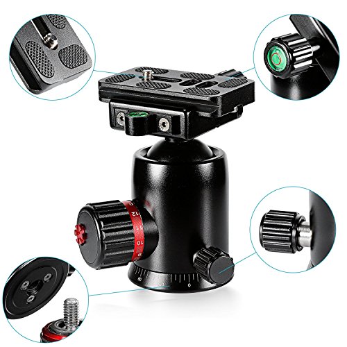 All images of Neewer® Professional Aluminum Alloy 360 Degree Rotating Panoramic Ball Head with 1/4" Quick Release Plate and Bubble Level, Load Capacity 8kg/17.6lbs, for Tripod, Monopod, Slider, DSLR Camera, Camcorder