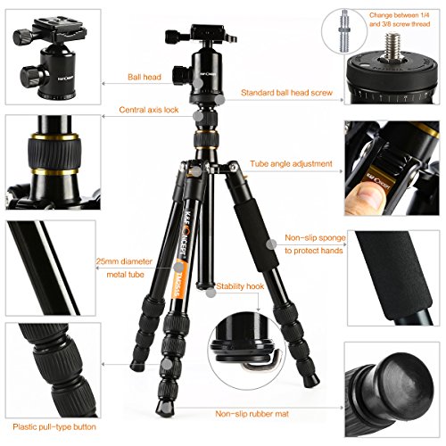 All images of Travel Camera Tripod,K&F Concept® Professional Tripod Camera Monopod Kit wtih Tripod Bag Tripod for DSLR Panasonic Canon Nikon Sony GoPro Fujifilm Kodak Cameras 59.84" TM2515