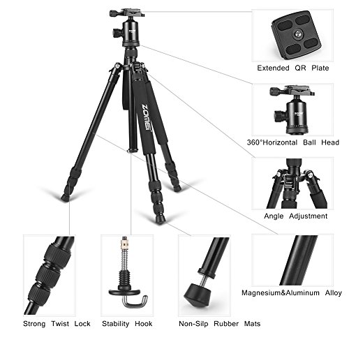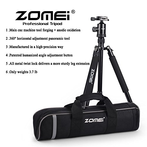 Zomei Z818 Professional Travel Tripod & Metallic Color Ball Head Compact for Canon Sony, Nikon,Samsung,Panasonic,Olympus,Kodak, Fuji-Black