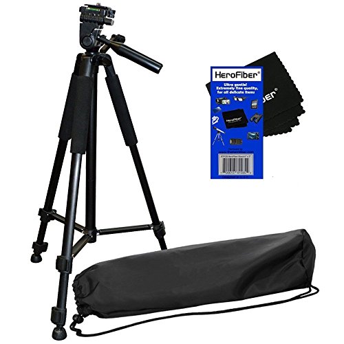 72" Pro Elite Series Camera/Camcorder Tripod & Deluxe Soft Carrying Case for Canon, Nikon, Sony, Olympus, Pentax, Samsung, Panasonic, Kodak, Fujifilm Digital Cameras & Camcorders w/ HeroFiber® Ultra Gentle Cleaning Cloth