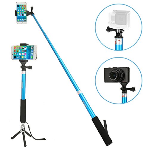 iKross GoPro Hero / smartphone / Camera Monopod Selfie Handheld Extendable Stick Pole with Mount Holder & Mini Tripod - Blue