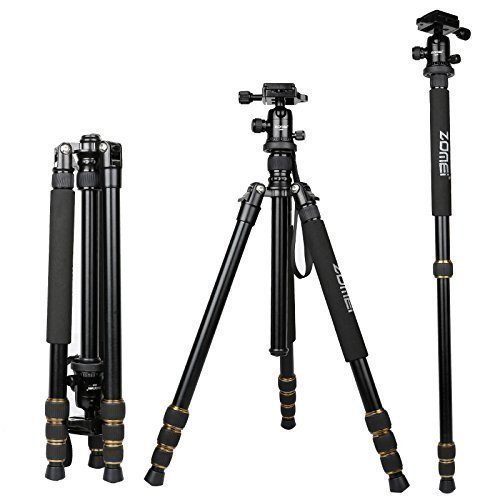 All images of ZOMEI® Z-Q666 Traveller Camera Magnesium Aluminium 5-Section Center Column Adjustable Tripod Monopod with 360º Quick Release Ball Head and Ball Head Pocket