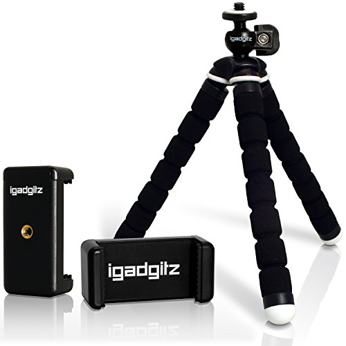 iGadgitz Lightweight Small Universal Flexible Foam Mini Tripod with Universal Smartphone Holder Mount Bracket Adapter for SLR DSLR Cameras- Black